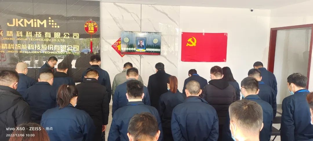 當天上午,接待大廳內(nèi)莊嚴肅穆。10點前,公司黨支部書記、董事長黃云斌同志帶領(lǐng)公司參加集體收看的人員提前走進會場。10點整,江澤民同志追悼大會開始,大家向江澤民同志默哀。